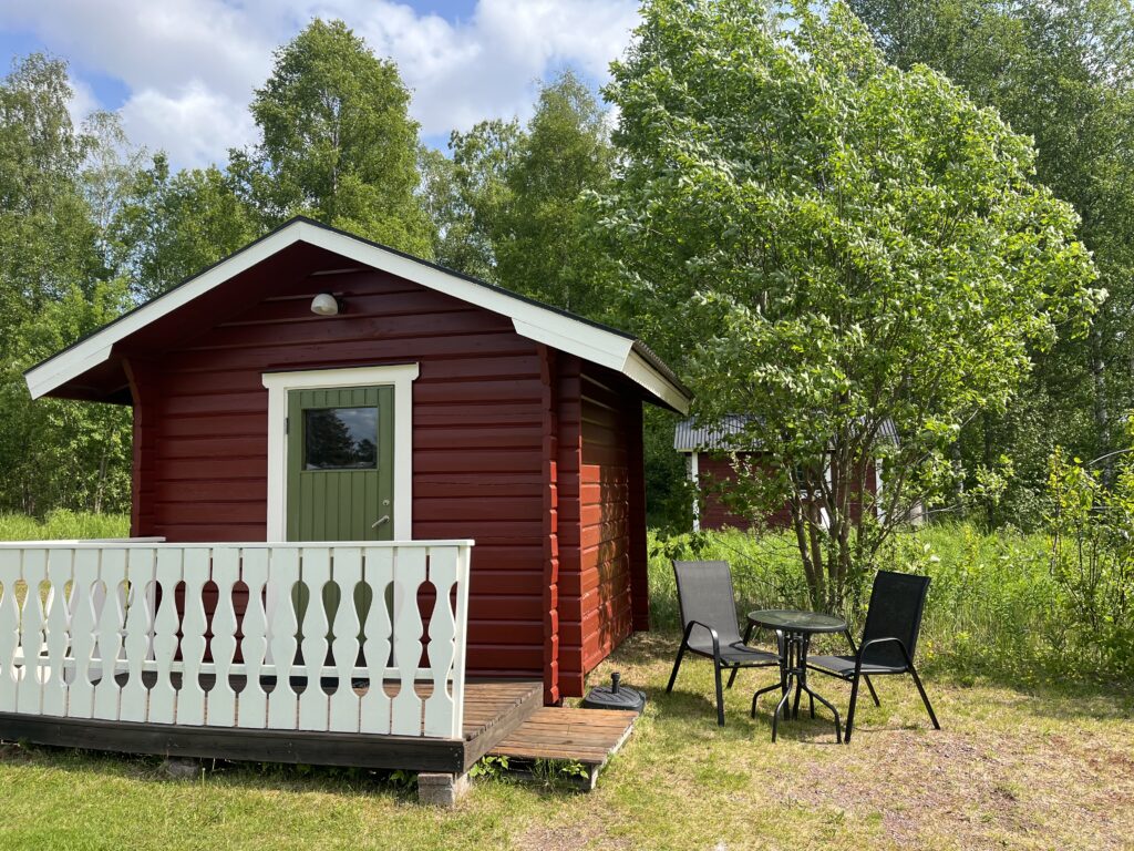 Ons huisje Mosippan is geschikt voor 2 à 3 personen. Deze stuga staat direct aan de waterrand en u kijkt vanuit uw raam zo op het meer.